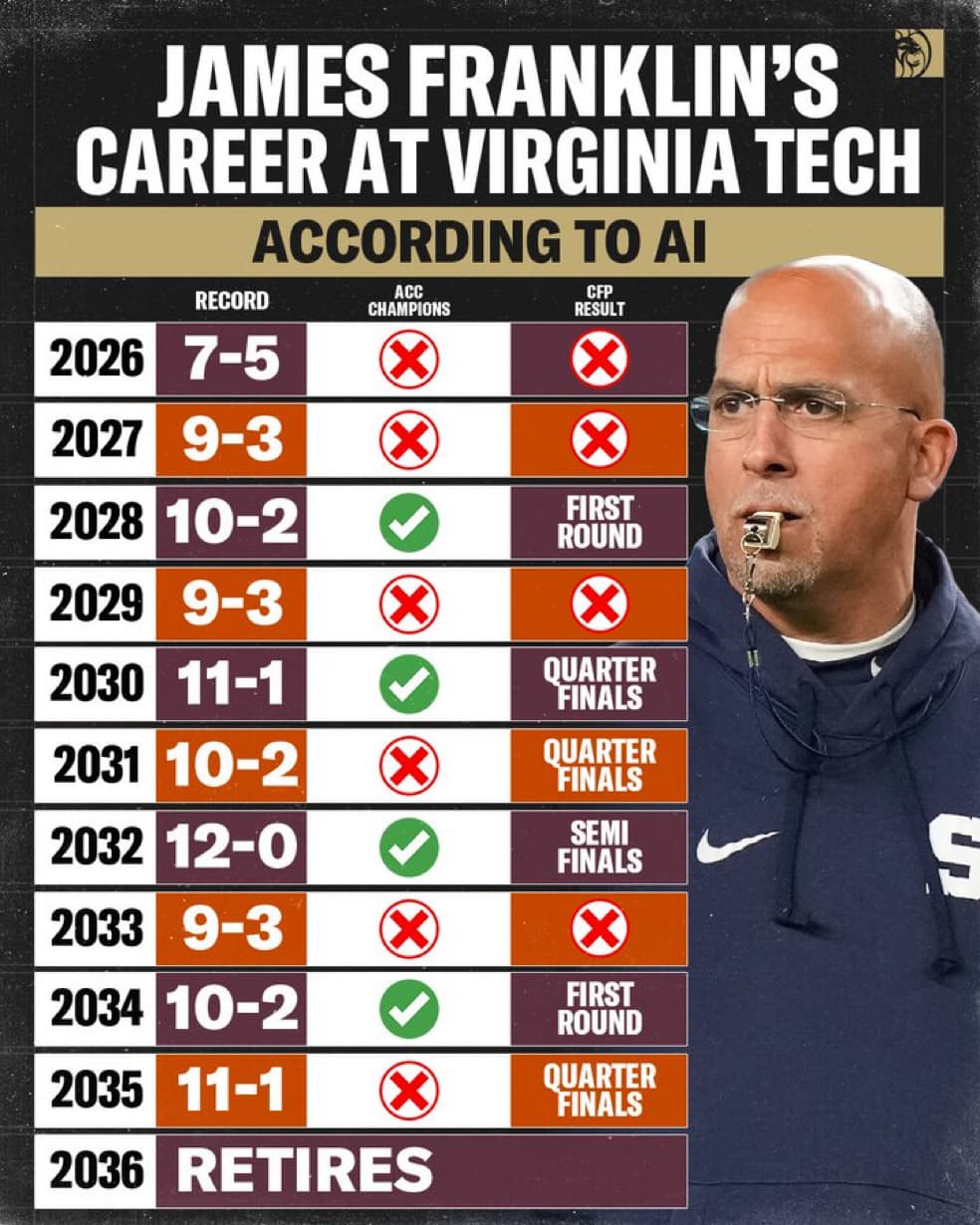 AI predicts Franklins 10 year record at VT. I’ll take the under. Scared to ask the same question for CTE