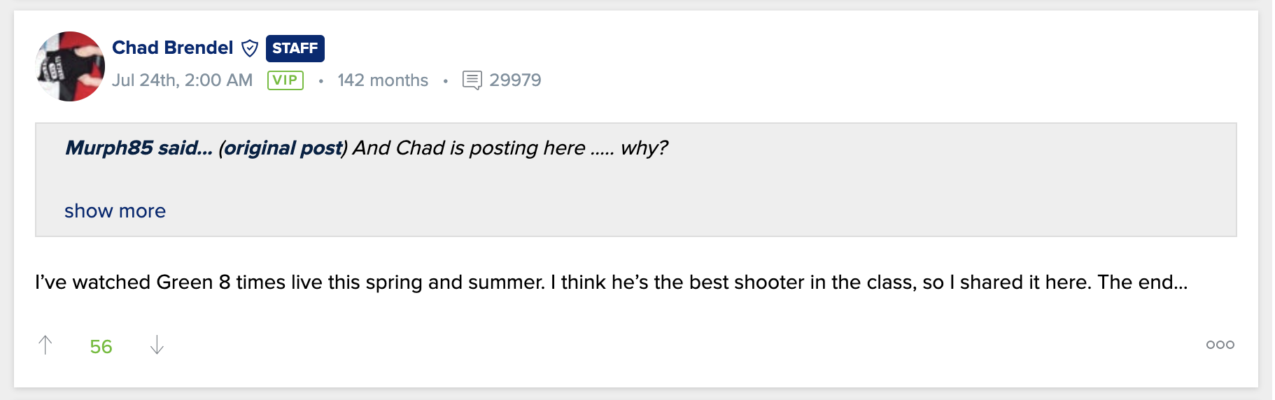 It took me a while to buy into Green. Mainly for the same reason. But the more i watched him the more i became convinced. He’s a baller. Great shooter with great defense and he’s a winner. He can play some beside of Reece in what will probably be his last year. Then Green can take over or not. Either way he will be a very valuable part of our team