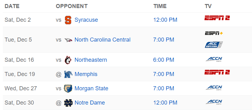 December schedule