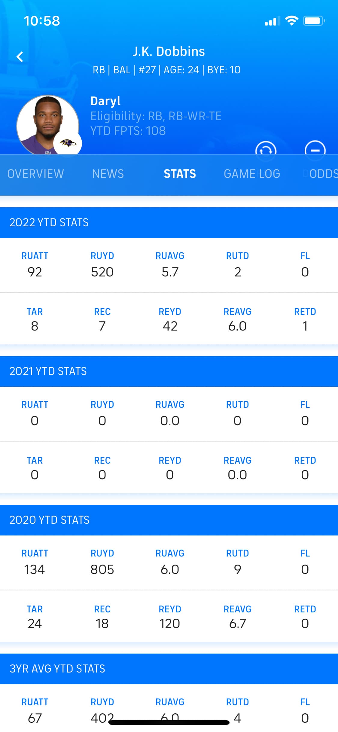 He averaged 6.0 yards per carry before the injury (but that was with a healthy Lamar Jackson, who hasn’t played with Dobbins the past four games, allowing defenses to put 8 or 9 in the box).