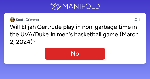 So when I joked about starting hoosbets.com and saw that several people clicked on the non-existent link I decided today to create a prediction market for the UVA/Duke game. Not the result, Vegas odds give us that probability, but the more important question: