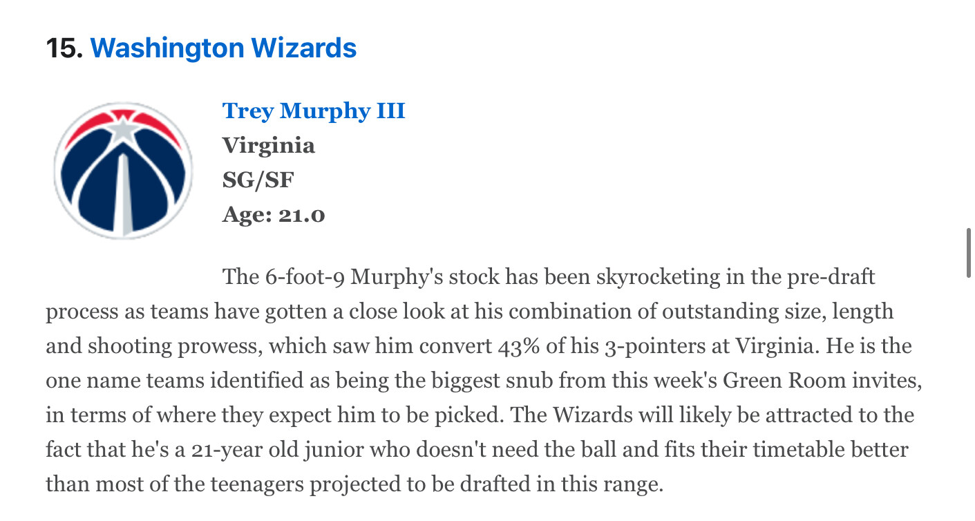 I think this is a really good fit for Trey. Wizards need shooting and any kind of length on the perimeter.