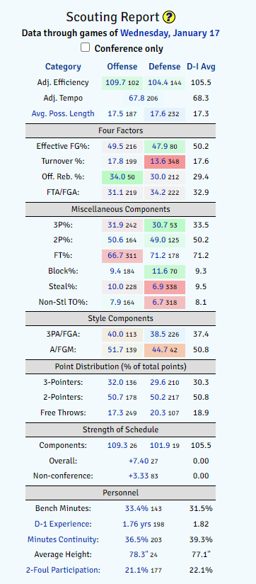 In “quality” games (Torvik), they are 74th. Much better than their 113th overall.