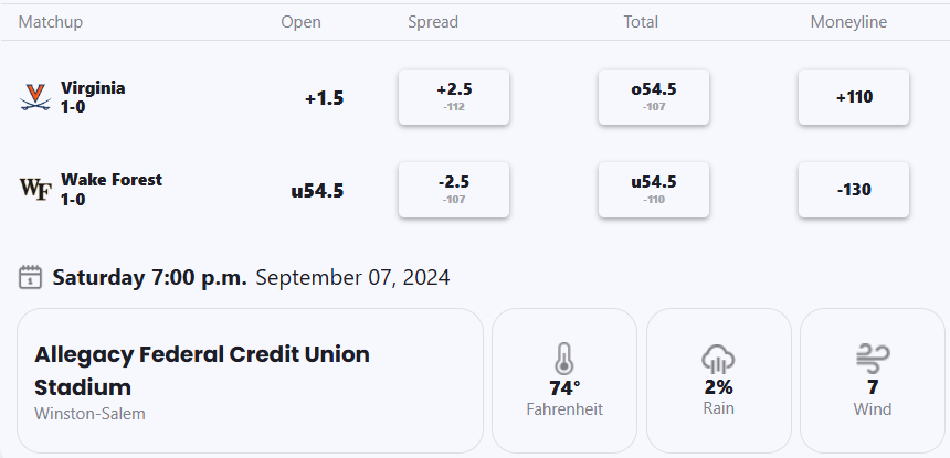 Virginia Cavaliers at Wake Forest Demon Deacons