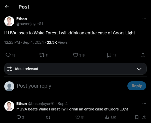 First time Iāve been nervous about a Virginia game in a long time. An absolutely winnable game but Wake wonāt roll over.
