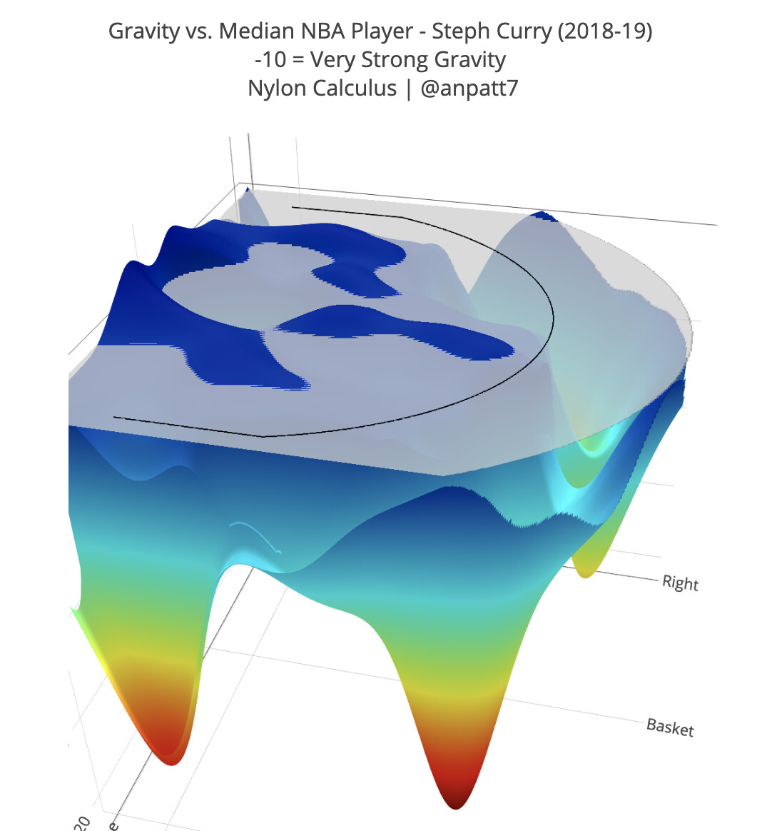 Been talkin about gravity for a long time. It’s why they couldn’t double McHale and Parish with Bird in the game. Steph is the greatest example - take a peek here of with Curry and without. With Curry it got Durant to fake Finals MVP’s that Curry deserved. He literally gets double teamed without the ball.