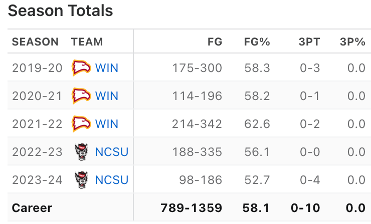 And NCSU’s rim protection numbers are kinda bad; they give up the 3rd most rim attempts in the rim along ACC teams (lol Syracuse at the bottom) and the percentage they give up isn’t good either (lol Syracuse almost at the bottom).