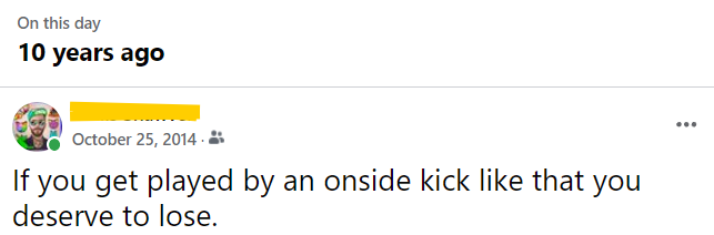And lose UVA did. Falling to UNC 28 - 27. The onside kick in question occurred after backup QB Mitch Trubisky threw a TD pass to put UNC ahead with 4 mins to go in the 4th quarter. UNC lined up for a normal kickoff but ⦠WHOOPS ⦠itās an onside kick! The UVA defense actually forced a 4th down FG attempt with about a min ago but were called for an illegal substitution penalty giving UNC a first down.