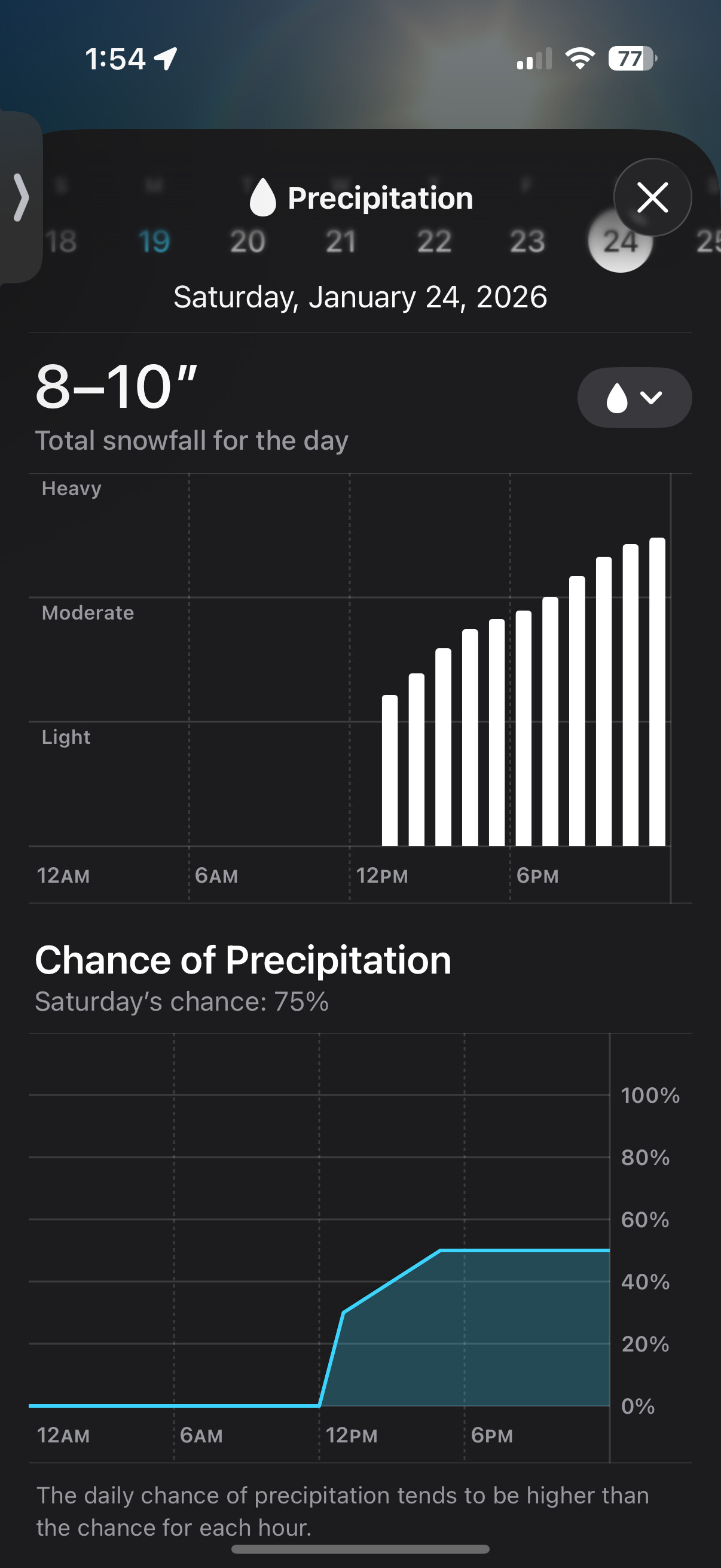 Hopefully not, but the totals they’re calling for right now are comical. If it snows that much, it’ll be the biggest storm in decades. In Richmond, they’re saying 8-12” on Saturday and an additional 16-23” on Sunday - with a high of 20 degrees. So . . . It’s hard to imagine, but maybe it’ll happen. The last forecast I saw did say the snow may hold off till Saturday night.