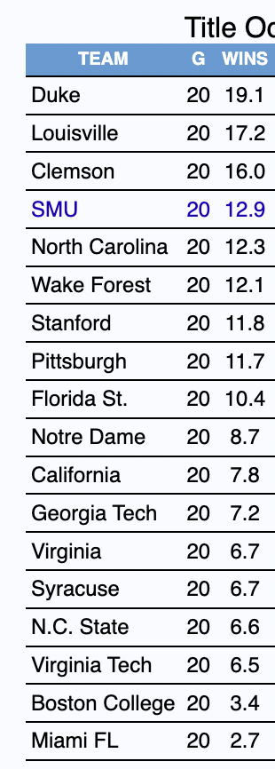 Things were looking good-ish coming in with all the other bubblers losing today. But if we lose by 20 it probably costs us a little more than 1.00 wins. We do 0.55 wins worse than expected this game, and the lopsided result will knock down future win probabilities probably at least 0.5 wins.