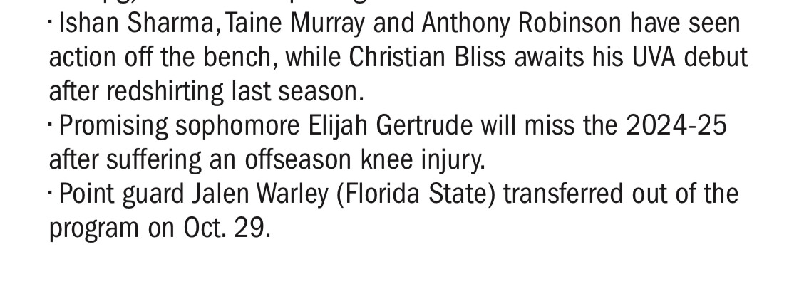 Game notes are out https://storage.googleapis.com/virginiasports-com/2024/11/TENN_112124.pdf