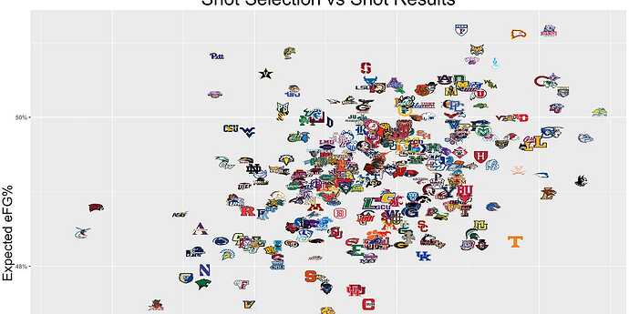 Yeah that chart isnāt doing much for me. It is basically showing that there isnāt much of a relationship between pace and efficiency, which is still true if you look at all D1 teams, not just tournament teams.